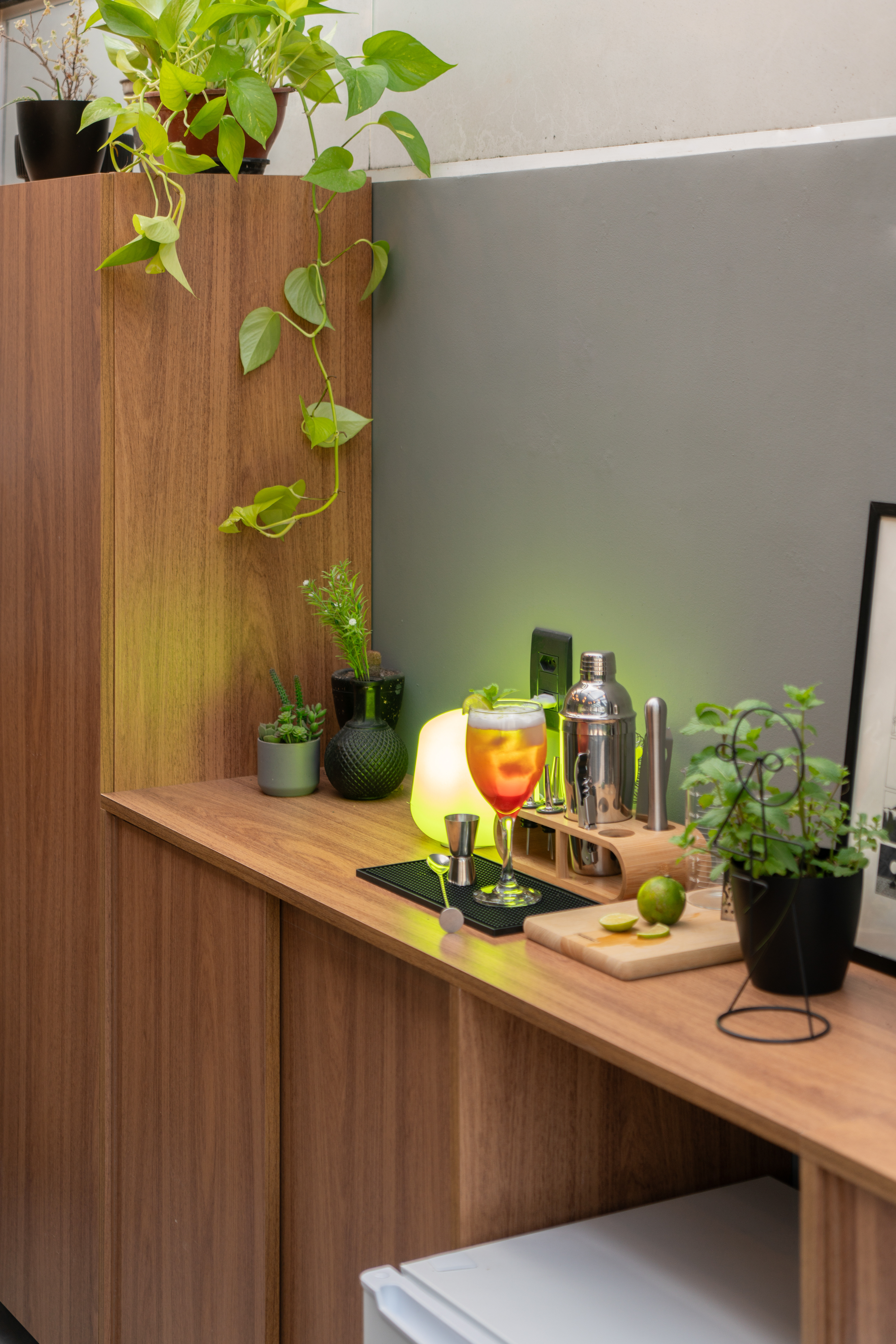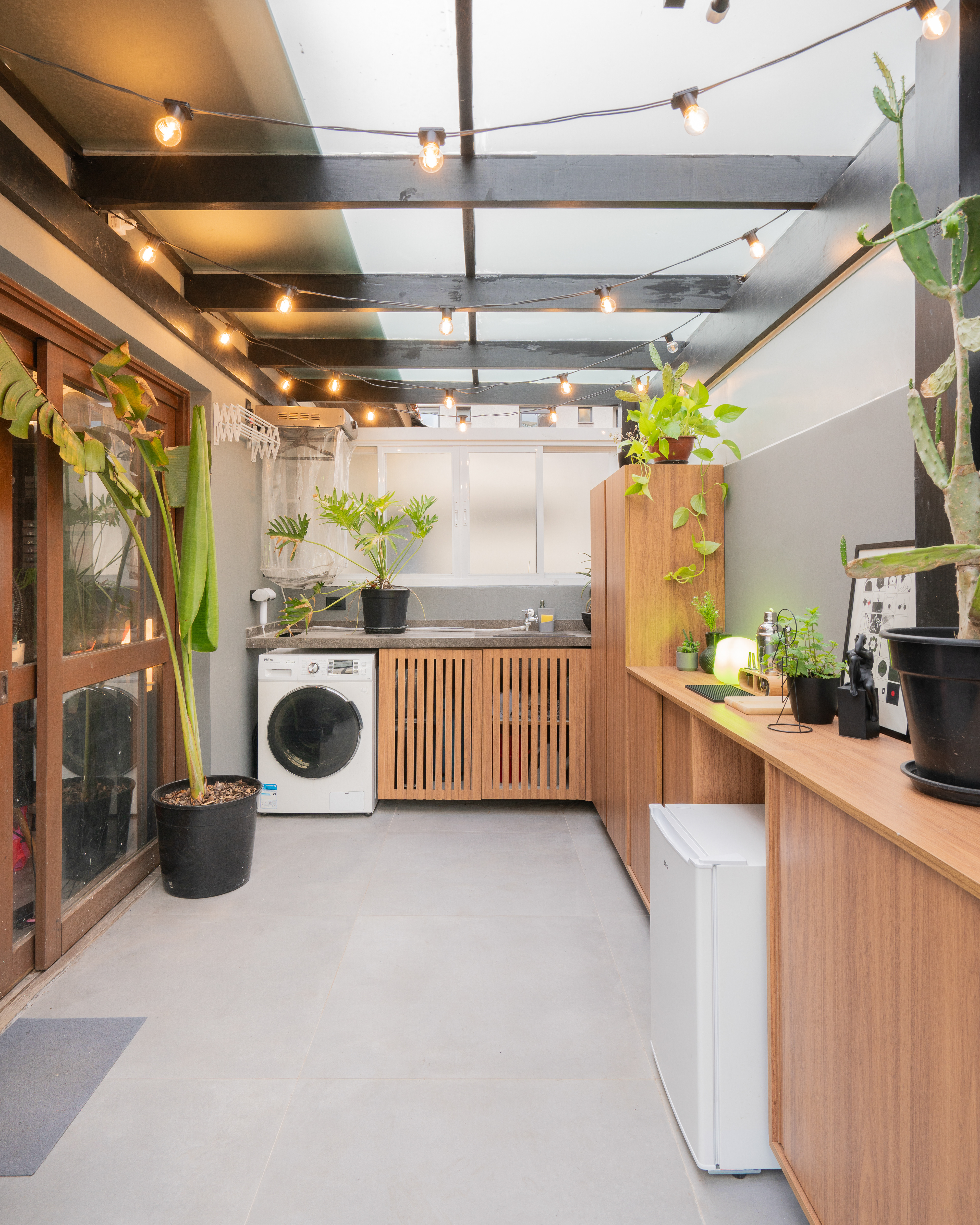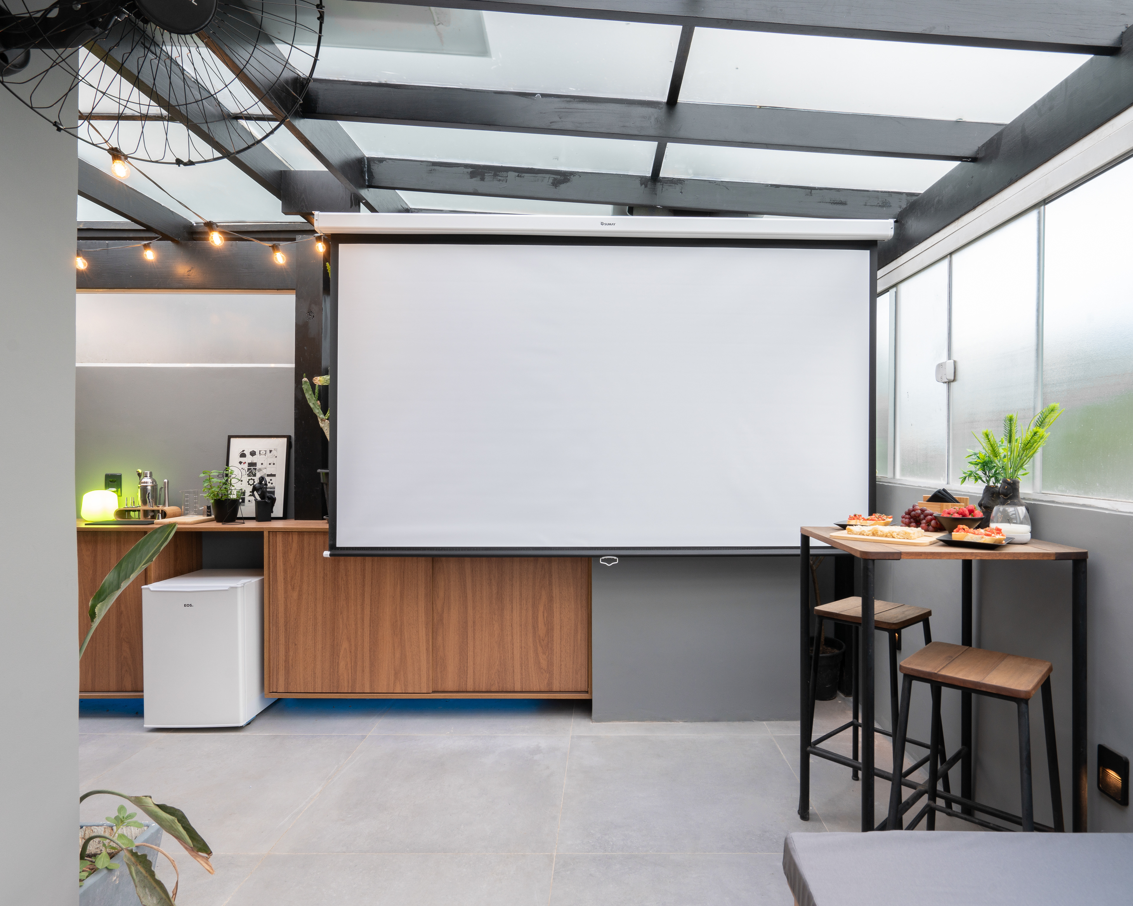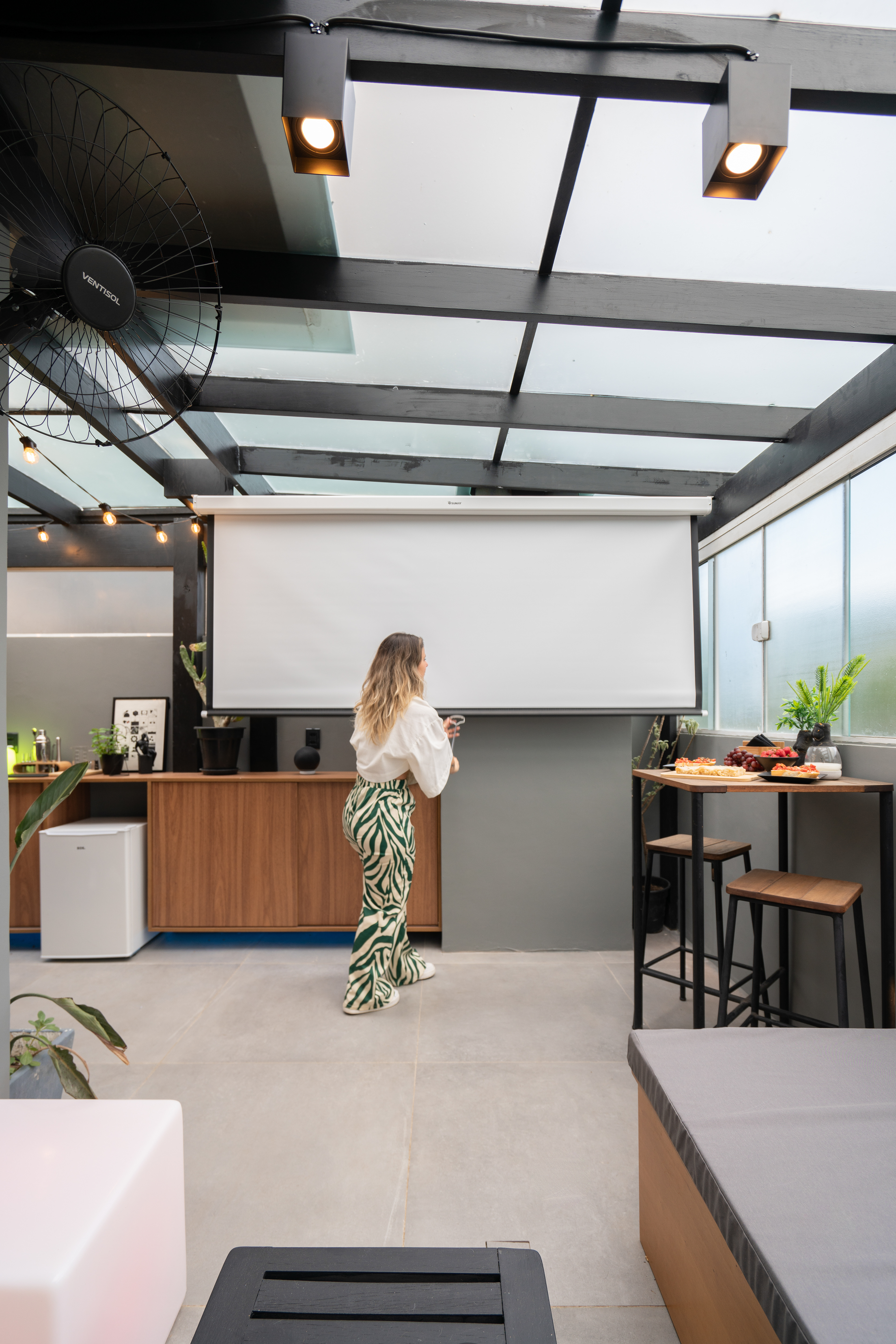 Projeto para área externa de cobertura de um apartamento de um jovem casal. A ideia principal era transformar o espaço para eles receberem os amigos e também curtir e relaxar.